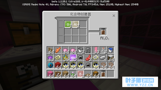 嗯Amy你又抢戏(˘•ω•˘)玻璃板忘记放了x 之后,在"化学物创建器"中用 氧(O)x3和铝(Al)x2 合成出这个棕了吧唧(划掉)氧化铝(Al2O3)