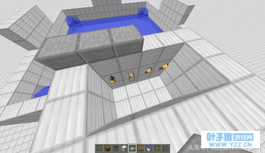 在四面墙壁上都设置一个这样存放村民用的小房间,由于铁傀儡的生成需要村民和有效门,所以下一步是安装门。