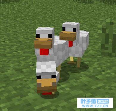最后就是玩家扔鸡蛋的时候是有几率扔出来一只小鸡的,概率大概在八分之一。扔出来的小鸡是幼年期,不过它们的生长速度非常快,玩家还可以用小麦帮助它们生长。 杀死小鸡可以获得鸡肉和羽毛,鸡肉用熔炉烧熟之后可以补充玩家大量的饱食度,羽毛则是制作一些物品的重要材料,比如说箭。 趣味小知识 下面还给大家分享一些关于小鸡的趣味小知识,相信会让你对鸡的观念发生改变的。 1.小鸡的碰撞体积很小,虽然不是《我的世界》中最小的,不过也排到了前几。因为小鸡可以放进铁栅栏或者玻璃和墙之间的缝隙中,看上去非常的袖珍。 2.鸡还可以被装进炼药锅里面。具体的做法就是在炼药锅上面放一个半砖,在半砖上放一个活塞。然后放一只小鸡在炼药锅上面,激活活塞推动半砖,就能将小鸡压进炼药锅了。桶里漏斗用这种方法也是可行的,但是小鸡会从漏斗下面的出口溜出来。