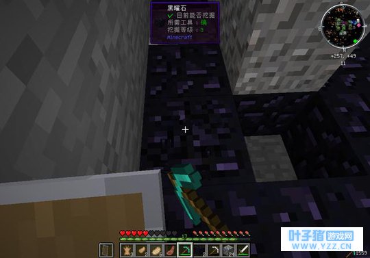 合成钻石镐后,可以挖掘黑曜石了。黑曜石可以用来做附魔台、地狱门等。黑曜石必须用钻石镐挖,不附魔的钻石稿挖掘速度大约为9.4秒1个。