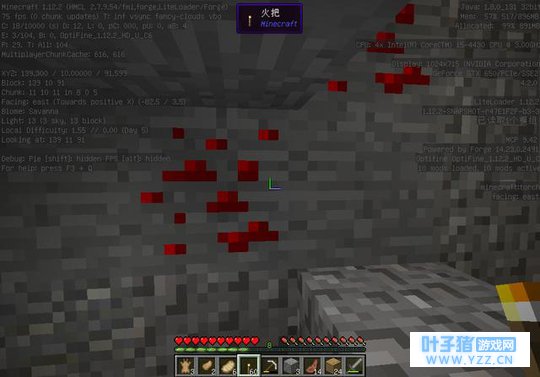 挖到一定的铁矿石后,按F3打开坐标,盯着y轴看,向下挖,直到挖到y轴显示11为止。这一层,各种矿石都可能有。 石头上有一些红色的方块就是红石矿了。可以用铁镐及更高级别的镐挖掘。挖掘之后掉小量经验和3个以上的红石。红石可以做指南针、钟、各种红石机关。