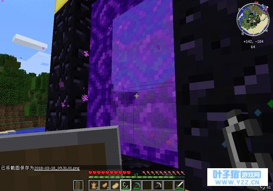 这样摆放黑曜石,四角可以放上自己喜欢的方块。然后,用燧石和铁锭合成打火石,往下面的黑曜石一点,就形成了地狱门。地狱里十分危险。