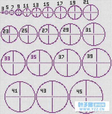 小编曾经为了在Minecraft中做一个圆,翻遍了国内外《我的世界》教程,也下遍了测算软件。计算用的稿纸比卫生纸用的还多(我猜你看不懂),虽然最终也算功德圆满,但是确实是废了一番功夫。那今后大家在做圆的时候可以参照此图,比起翻看各类视频教程,要快的多。在做圆的时候,建议大家首先要确定好半径,和中心点。今后做圆是不是非常简单啦,所以请记住这张图。 二、给经验塔画个圈