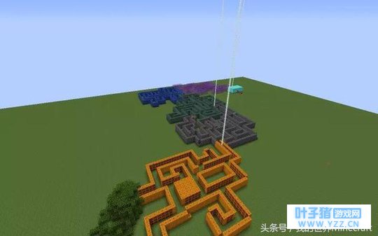 如果觉得单色调的迷宫太单调了,那么这款采用多种不同色彩的材料拼接成的5段迷宫一定能够让你满意。作者还贴心的在每段迷宫的出口处设置了一个信标,这样就不至于在里面迷失到找不到北了。