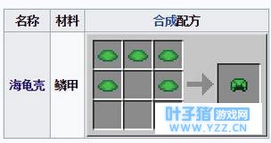 鳞甲获得方法: 幼年海龟长大时,会掉落鳞甲,玩家可以在海龟聚集地寻找获得。 鳞甲有什么作用? 鳞甲(Scute)可以用来制作海龟壳,合成配方如下图: