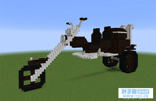 这辆霸气的“小三轮”简直艺术感十足,充满了Minecraft的风格。白色方块用的是石英石,深色方块用深色橡木木板即可,当然羊毛方块也是可以的。据说这个建筑是作者是看着自家小三轮建造的,所以说,艺术来源于生活,MC的艺术当然也是来自于生活之中。善于发现生活的《我的世界》玩家,才能获得更多的灵感。 作品四: