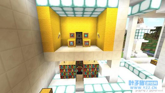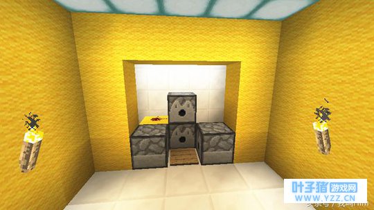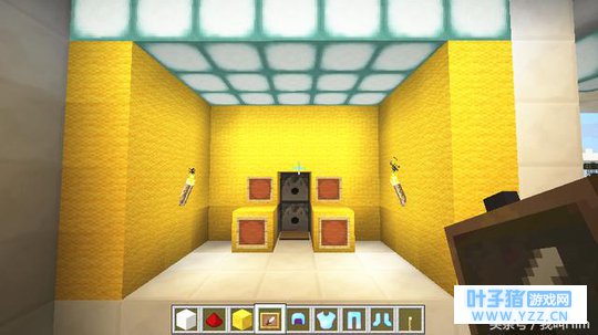 小编也是个红石渣,但是这个真的很简单。按部就班的操作就可以了。红石线路走好之后,我们沿着最外围的发射器将整个设备围起来。任何方块都是可以的,只是小编偏爱黄色,本来打算用石英石的,但是考虑白色的石英石与建筑之间没有跳色,《我的世界》黄色的羊毛也是很美滴。 三、自动衣橱完工