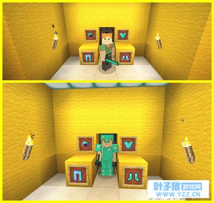 我们来实验一下,走进“衣柜”中的压力板上,只听连续几声的“啪嗒”。一身钻石装就穿上了,今后外出探险再也不用将衣服,一件一件的拖入装备栏了。太实用了有木有!你还在等什么,赶快将这个简单、方便、省事、实用、耐用的“全自动”衣柜带回家吧! |