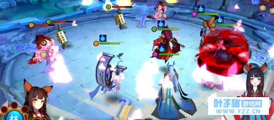 这是《云梦四时歌》的战斗画面,可以说是完全照搬了《阴阳师》,从人物分布再到背景设计