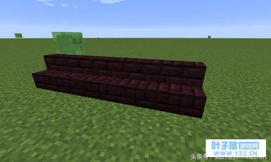 首先摆放一个5格宽的台阶,这是用于走进末地传送门(末地传送门并不像下界传送门那样立着摆放,而是平铺在平面上),台阶的材质推荐使用地狱砖,不为别的,就是为了增添一丝神秘和黑暗的气息。