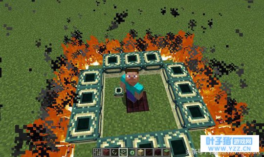 点上火之后效果就已经不错了,下面开始建造传送门本身。