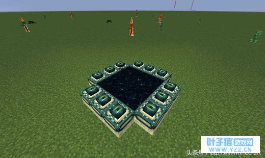 然后是给每一个方块上摆放末影之眼,当你把最后一个末影之眼放到传送门方块上市时,立即就会被传送到末地啦。
