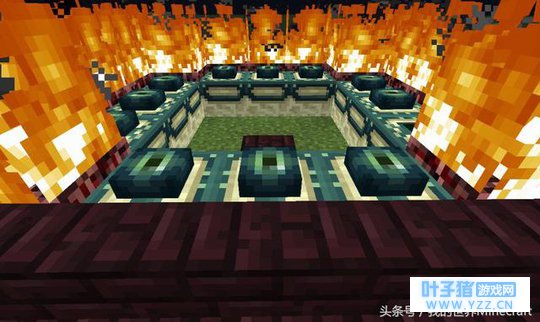 预留出传送门5X5的位置,然后把周围一圈的方块换成地狱岩,当然是为了不灭之火准备的!