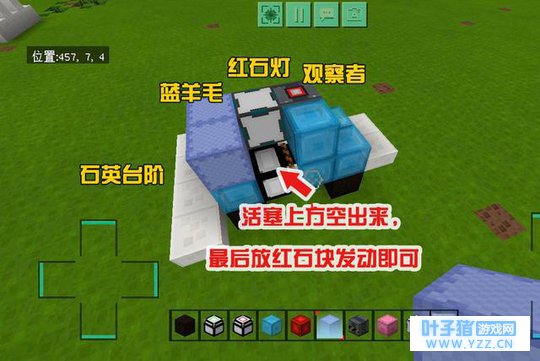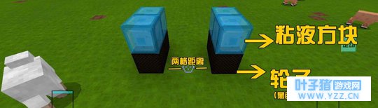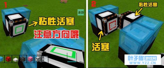 接下来在粘性活塞上放两格粘液方块,然后敲掉下面的那一个。