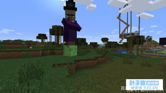 女巫与史莱姆有一个共同的特点,就是他们都会生成于沼泽之上。因此“女巫骑史莱姆”这种组合就成为了可能,如果你在一个沼泽上发现了“女巫小屋”那么你就老老实实的守株待兔吧,总有一天能看到这种萌萌哒组合,只是这个行动能力确实令人堪忧,史莱姆奔奔跳跳,啥时候是个头。好在女巫是远程攻击的生物。 六、僵尸骑村民