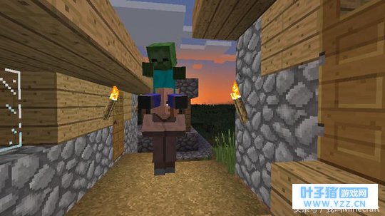 僵尸能骑上村民,这也注定了是《我的世界》悲剧的组合之一,僵尸再也不用到处找村民了,屁股下就现成的一个村民。这个组合有一个神奇的地方就是,僵尸下方的村民在被僵尸攻击后,有几率形成僵尸村民。这时候,僵尸骑的就不再是村民了,而是僵尸村民,是不是很神奇呢? 七、小黑骑猪