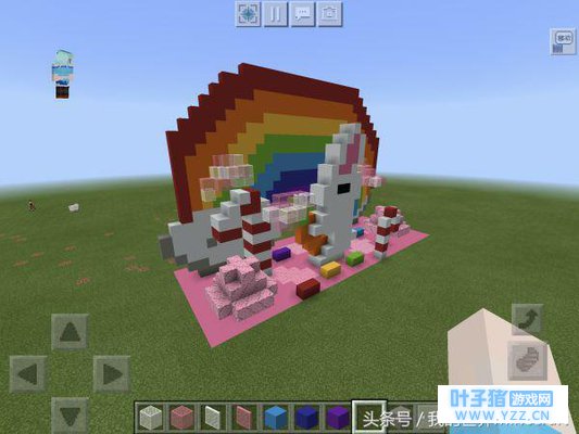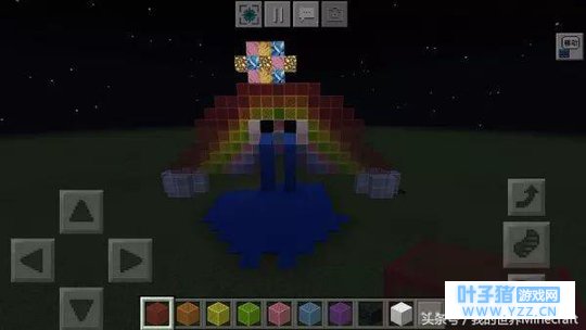 这就是此次活动推荐使用的彩色方块,不止有羊毛哦~各种颜色的床、地毯、潜影箱等等都是可以使用的。下面我们就一起来看看参赛的玩家们PO出的作品吧! 哭泣的小彩虹 作者:我的世界MCcp