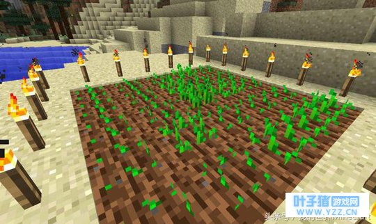 为了达到控制变量的效果,我们在周围插上一圈火把以保证充足的光照,但是不提供水,看看结果会怎样?