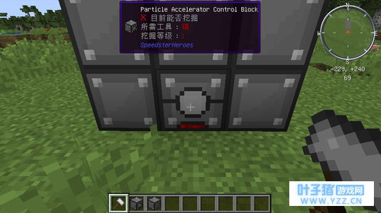 第一步:你需要把粒子加速器方块和粒子加速器核心放置在地面上!粒子加速器核心只需要一个,如图中间。后面长5X宽3X高3。
