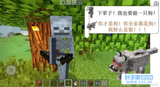 在《我的世界》Minecraft沙盒游戏之中,最为聪明怪物就是“骷髅小白”,他不仅箭技高超,还知道躲避阳光。唯独天生惧怕狼,谁让身上都是骨头呢,狼最好这口。所以当骷髅被一只狼杀死后,他唯一的遗言就是“来生再也不生为骷髅,要做就做小狗狗!”狼看到了小白的临终遗言不乐意了,“人家明明是狼,不是狗狗!”好吧,其实你们俩都很萌! 四、苦力怕的“遗言”
