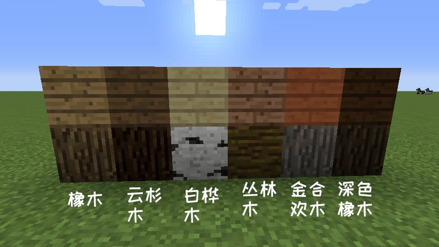 林地府邸:1.10加入游戏里的遗迹,很多的房子;里面有唤魔者和卫道士守卫;击败怪物后这个房子你就可以当别墅了。 地下遗迹:在矿洞里挖矿有时候就可以挖到由圆石和苔石组成的区域;里面有僵尸刷怪笼或者小白刷怪笼等等,在刷怪笼边上有宝箱(一般是各种吃的) 沉船遗迹:新版本1.13(正在测试),居说要添加沉船遗迹。 二、物品1、树木:有橡木、白桦木、云杉木、丛林木、深色像树、金合欢树,刚刚进入游戏需要用手按左键撸树;一个树可以分解成4个木板。