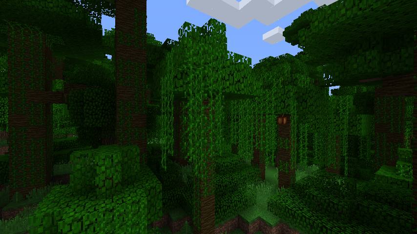 雨林:比较稀有的地形,有几率生成丛林神庙;树木密密麻麻,有可能出现西瓜可可豆和藤蔓