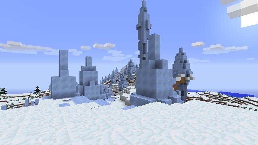 峡谷 雪山:处于海拔比较高的地方,在海拔高的地方下雨会变成下雪;用铲子铲雪可以获得雪球