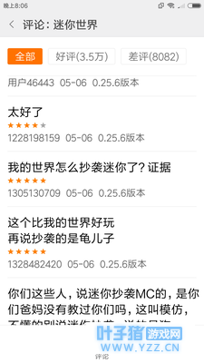希望能给更多人看到,我真的写的不好的,但我真的希望迷你世界能下架。 我想要知道的是,一款游戏抄袭一款游戏玩家是怎么认为的?我甚至想说,迷你世界这不是抄袭,这是复制黏贴。为什么有些游戏,抄袭了别人(复制黏贴),为什么还会有这么多人给与肯定,表扬,正版会被。。。迷你世界抄袭我的世界,凡是玩过我的世界,游走游戏圈都知道。