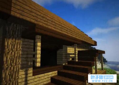 框架的建造很简单,不过颜色要注意一下,不要和房顶、屋檐、墙一样的颜色就行了。另外房子左右两边的屋檐下也是要做一个框架的,小伙伴们不要漏了。 楼梯因为做了地基,所以房子拔高了不少,所以需要建造一个楼梯。不过如果只在门口建造一个楼梯的话,看起来会显得比较突兀,所以最好在楼梯上面建造一些装饰,比如可以可以建造一个凉亭、走廊一类的。