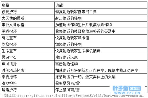 在上面放上特定物品,Shift+右键就可以激活台桌,可以对周围10*9*10空间产生以下效果哦~