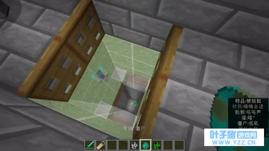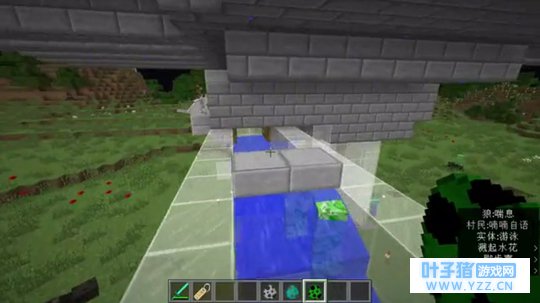 这边放了个村民跟两只豹猫作用是来吸引僵尸的注意,把苦力怕吓到另一边去