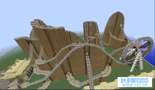 胖虎最喜欢在游戏里尝试建造各种奇葩建筑物,水下房子就很有意思。这个设计理念虽然老掉牙,但建设起来你就会发现要考虑的问题还蛮多的。 3、过山车