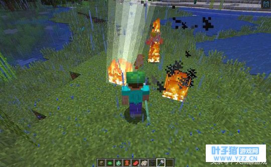 在新版中,引雷附魔非常强力,而且非常之帅气,特效比冰霜行者还帅!当玩家将附有引雷附魔三叉戟投向敌人时,会发现一道闪电劈下,怪物灰飞烟灭!普通怪物只需要两击,血量低的一下一个直接秒杀,颇有自己就能呼风唤雷的感觉! 当然这个附魔的也有一些限制。1.它只能在雷雨天时生效;2.只能在户外。另外引雷附魔最高等级只有1级。