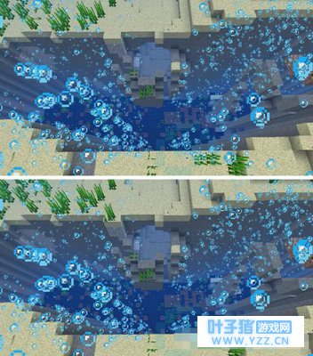 四、《我的世界》Minecraft“找茬”—— 水域 这是《我的世界》1.13水域中的美丽气泡,这是原版材质哦。可以看出Mojang在1.13中材质更新下了大功夫的,原版的照片就可以如此的富有魅力,柔和。图中依旧有一处不同,难度是不是逐渐变大了?其实还是那句话,如果你是一名MC“强迫症”玩家,只需要看一眼,就会发现其中不同之处。