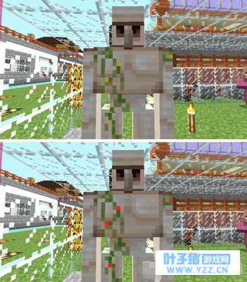 二、《我的世界》Minecraft“找茬”—— 铁傀儡 铁傀儡是玩家的忠实伙伴,在《我的世界》中,铁傀儡可以守护村庄,保护村民。玩家也可以召唤他为你而战。图中的铁傀儡不同之处其实非常明显啦,如果把两只铁傀儡放在一起,强迫症估计又要全身难受了。因为他们喜欢的是整齐统一,如此两位不同的铁傀儡,他们的存在对我们“小强”来说,简直是噩梦。