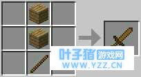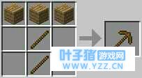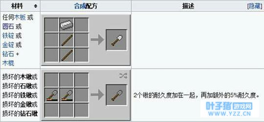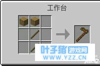 合成方法是一根木棍与任意材料(木板、圆石、铁锭、金锭、钻石)