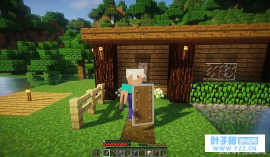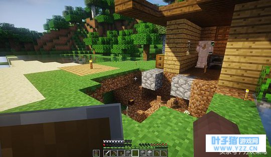 既然解决了食物问题,这回就可以安心的下地洞了。为了对付小白,我制作了盾牌,这次可以刚正面了吧,哈哈哈