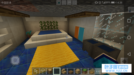 浴室 在主卧的右侧也挖掘一个跟书房大小的空间,最里面用石英阶梯摆放一个浴池,墙上可以用藤蔓装饰。右侧的玻璃其实是镜子,想不到吧~O_o,地板这次不用木板而改用成青金石块,凸显这是一个浴室... ...