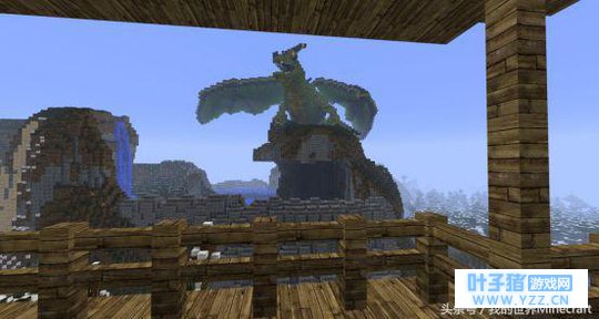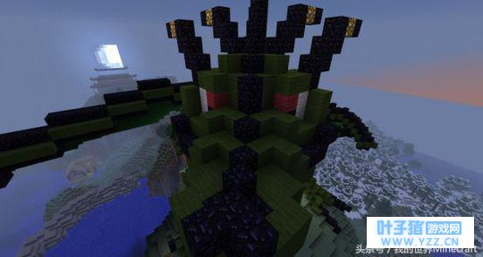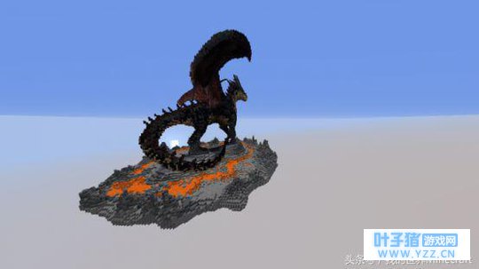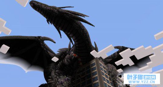 可以看到在降落的时候,这条巨龙轻易地撞弯了楼顶的信号塔。而众所周知的是,在《我的世界》里,方块都是宁折不弯的,为了表现弯折效果,作者花费了大量的心血和设计。