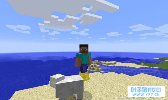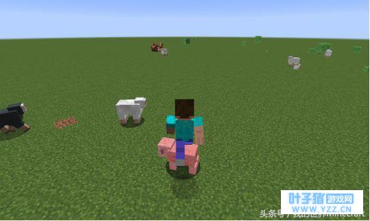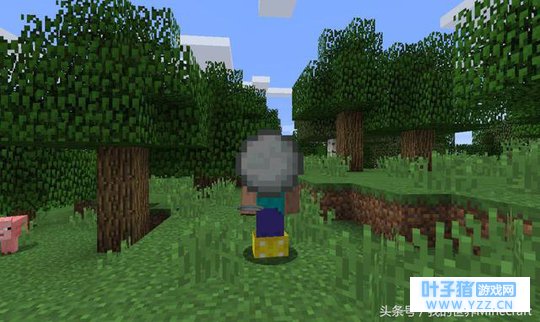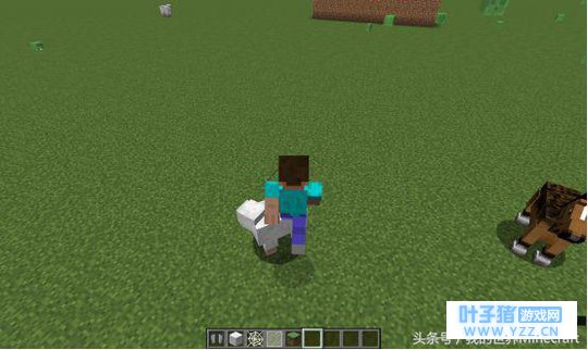 哎呀,没跳过去,这只羊的个子有点高啊,实在不好跳,不过好在《我的世界》里还有其他动物,我们换个动物跳。