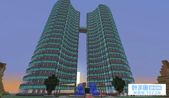 这栋大楼由于通体使用黑色的玻璃幕墙,所以还有一个外号叫做“黑塔”。有趣的是,作者还提醒在进入存档时一定要使用指定的材质包,否则在默认材质下大楼看起来完全不是这么回事。 双子塔 作者:Jesskah