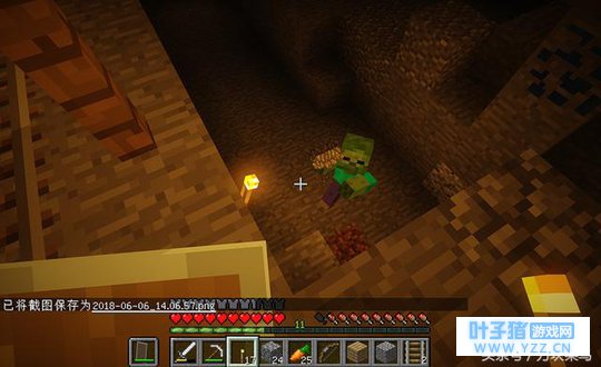 上面这个刷怪笼旁边竟然没有宝箱,生气。走着走着,遇见一只僵尸,这只僵尸手里竟然拿了一个圆石方块,这是要给我往死里揍啊?