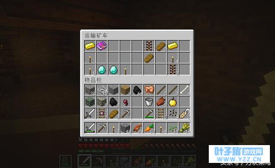 比较好的东西是在一个矿车中的宝箱里发现的,有两颗钻石和一本“耐久3”的附魔书。