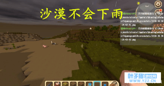 作为《我的世界》沙盒游戏中的大哥大,许多游戏机制都是创新的,独一无二的。就比如说Minecraft的雨天,沙漠不会下雨这件“不科学”的事。迷你居然也有同样的机制,如果站在沙漠边缘,你会发现右边在下雨,左边不下雨的神奇景色。这个,迷你,敢问这个设计您是怎么想出来的? 五、白天不能睡觉