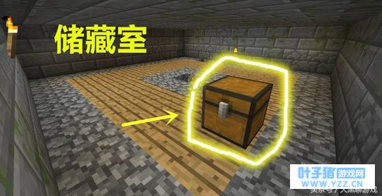 储藏室相对又要少见一些。储藏室一般分为上下两层,每层两格高,下层房中央有圆石柱,旁边会有楼梯可以上二楼。二楼地面由圆石和橡木板构成,上面还存在玩家最喜欢的战利品箱子,遇到的玩家可千万别忘了去楼上搜刮。
