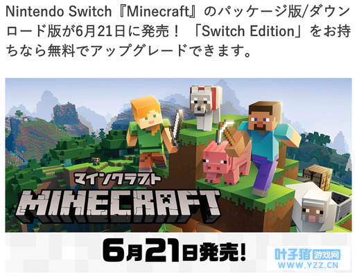 2018年6月任天堂Switch新发售游戏里Minecraft赫然在列。 不明真相的吃瓜群众们表示不是已经发售了怎么又来一次?! 任天堂对这次发布并没有太多说明,只是简单介绍说是之前旧版的升级版。已经购买旧版的用户可以免费升级到新版,存档数据也可以转移到新版,同时卡带版也会一并发售。