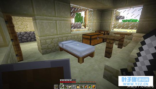 由于这个村子离大型矿洞比较近,菜鸟君就打算在这里长住下去了,造了一张床,也不管村民是否欢迎我,随便找了个屋子放进去。