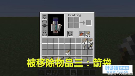 真正见过箭袋的人少,但听过的玩家肯定不少!在1.9快照版本中, 开发者公布了一张带有箭袋的截图 ,但遗憾的是箭袋这个物品很快在其后被移除,甚至都没真正出现。至于原因,制作者表示:“箭还是拿在手里更加自然”。 事实上箭袋这件物品存在的时间远远不止这么短。 它其实早在远古的Indev版本中就已被加入进游戏,隐藏在材质之中 ,绝大部分玩家们可能完全不知道!