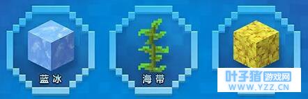 在海洋中也能自由搭建建筑。海晶石,去皮木头,按钮。压力板和活板门,可以搭建基础的建筑结构。珊瑚块、海带、干海带块、蓝冰、珊瑚扇和海泡菜可以让你的建筑更有海洋风情。