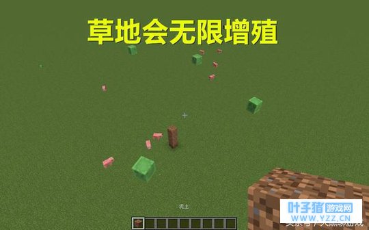 在太阳底下,还会发生这种神奇的现象,那就是 让泥土方块变草方块,只要条件充足它们就能无限增殖! 当然要实现这个要几个条件,其一是需要阳光直接照射到泥土方块上,而且旁边必须还要有一个同样被照射到的草方块,只有这样,才能使旁边的草蔓延过去,进而无限繁殖出草方块,只要给它们足够的时间和光照,一块草方块,就能让无数泥土方块增殖成无限大草原!